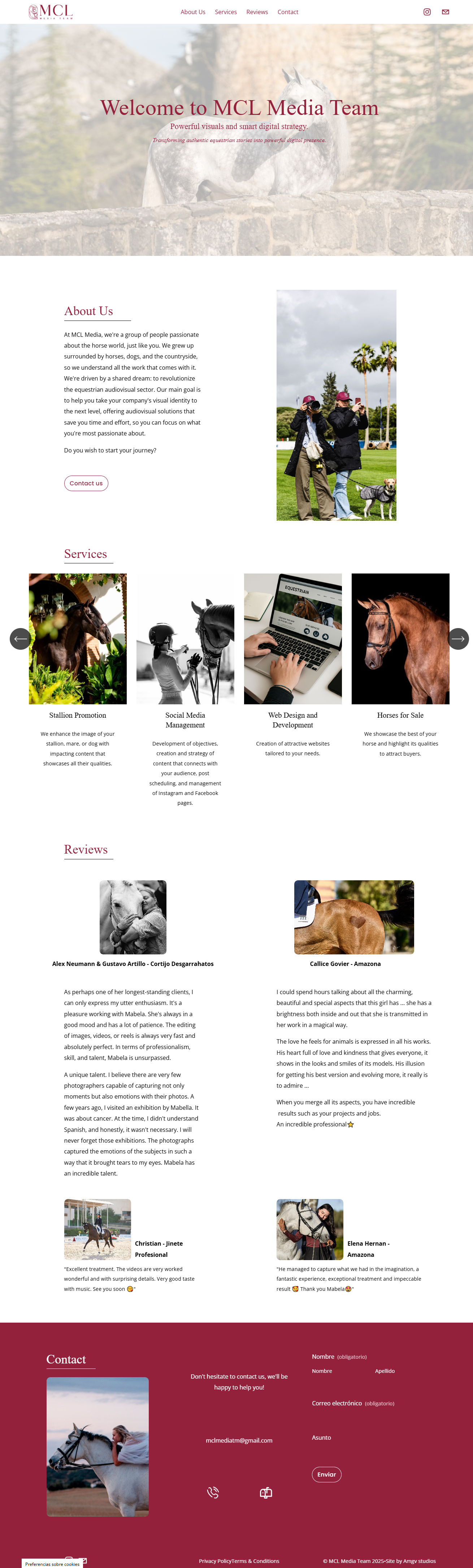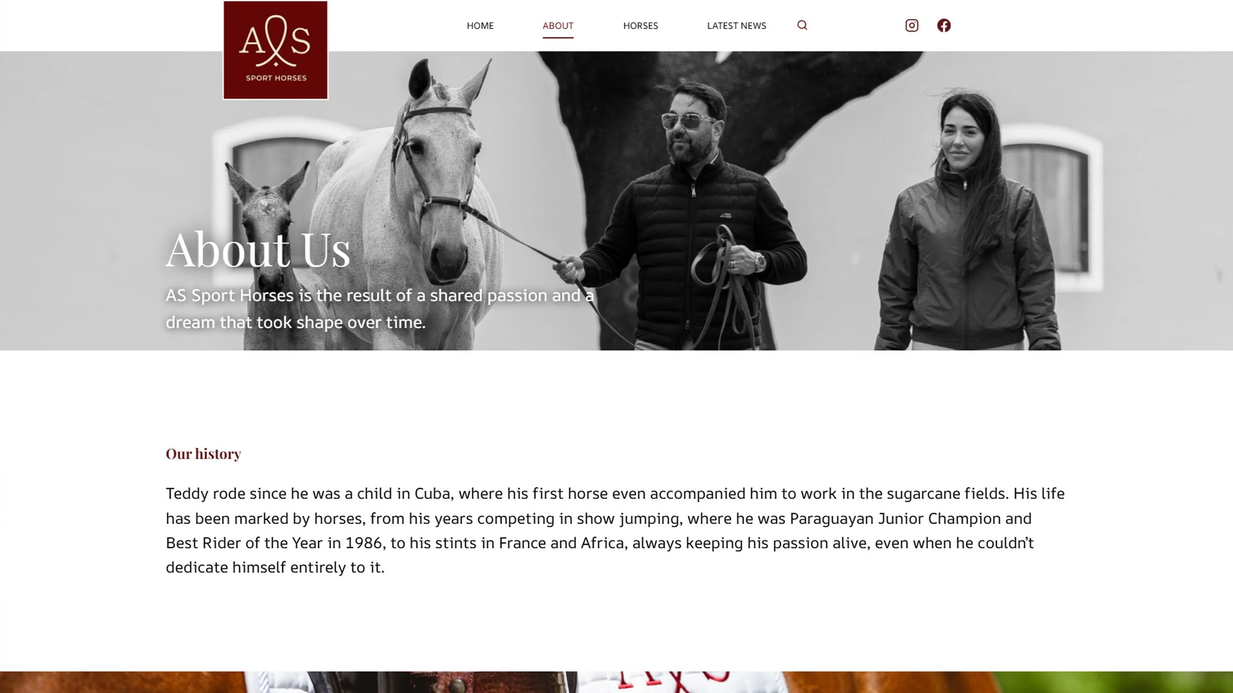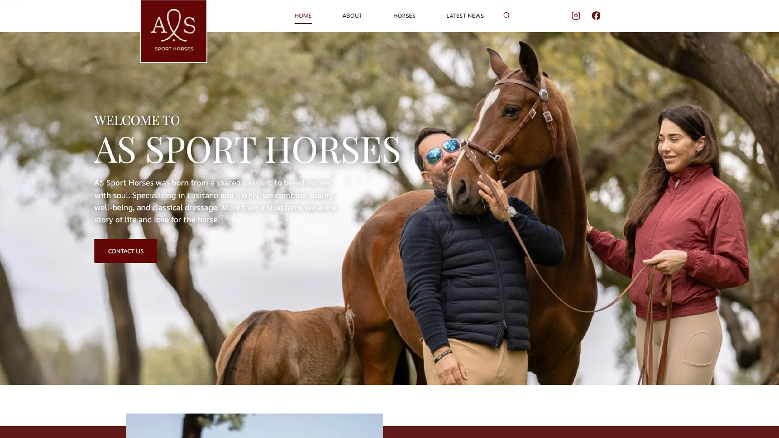 El diseño web ha sido realizado por AMGVstudios, en colaboración con MCL Media Team, creando una plataforma moderna, intuitiva y adaptada a la esencia de la marca, para ofrecer a los visitantes una experiencia visual y funcional acorde al prestigio de AS Sport Horses. Web